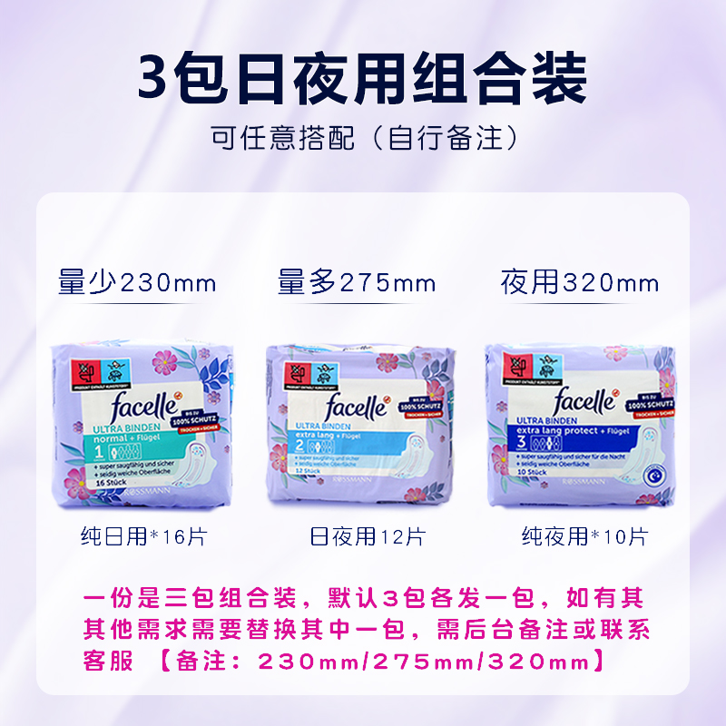 German import facelle sanitary cotton female daily night use combination ultra-thin cotton soft aunt towel three-45 drop of water