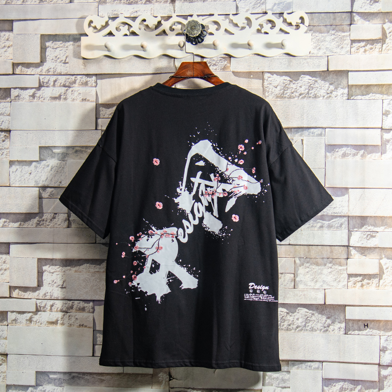 BTMG White Sugar Roses 22 Chinese text printing pizza pattern tide short sleeve T shirt men summer loose