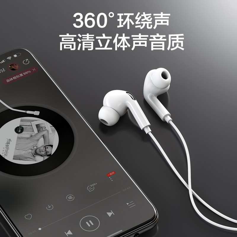 Headphones wired in ear style high sound quality applicable Apple vivo Huawei oppo Xiaomi mobile phone typec connector round hole earplugs for all K song sleep special wire control with wheat soundproof noise reduction