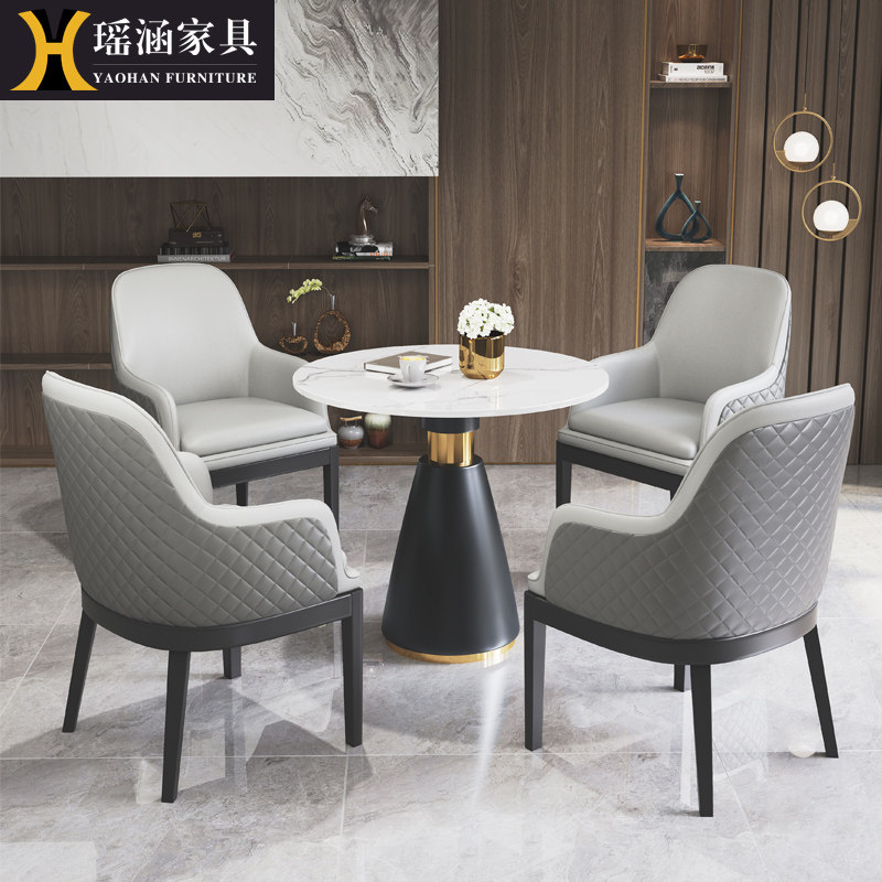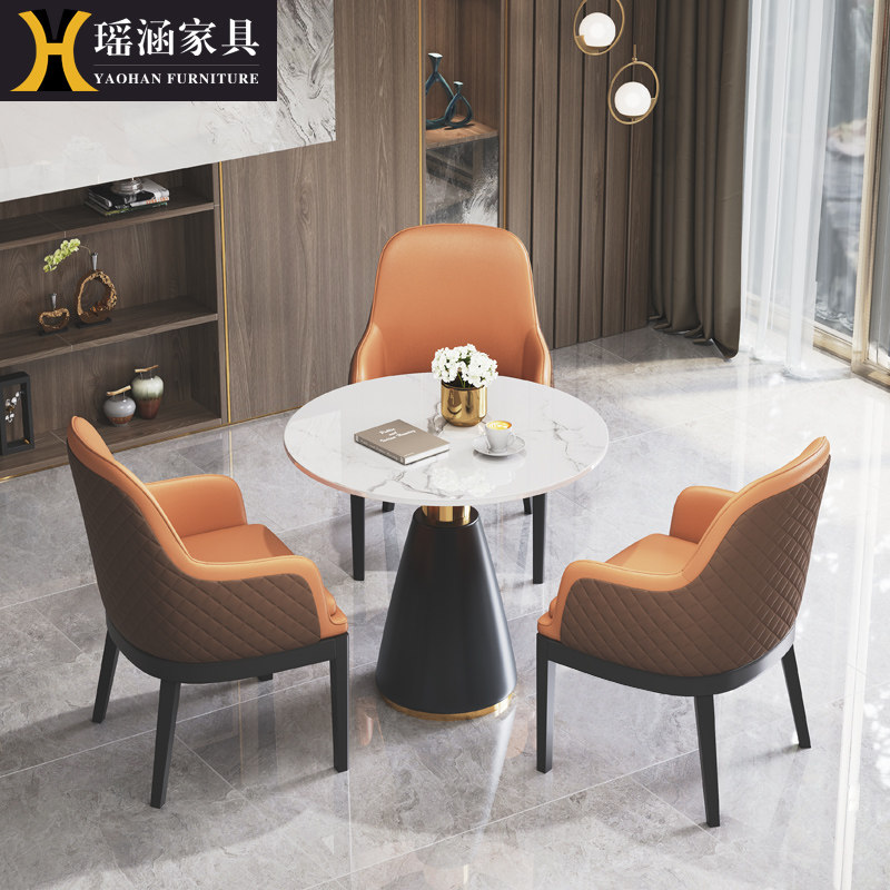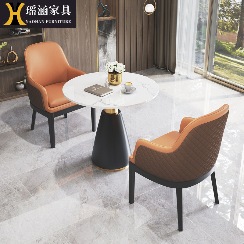 Solid wood marble negotiation tables and chairs combination Bentley chair sample house display center reception and parlor rest area casual small round table