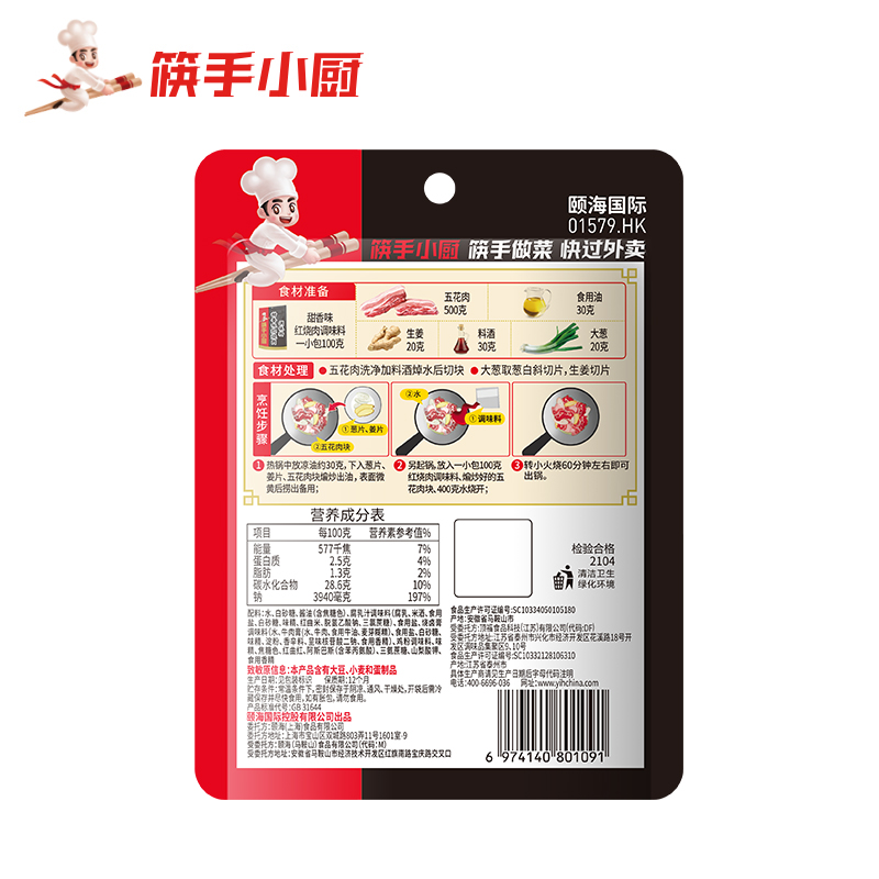 Haidilao chopsticks hand kitchen sweet fragrance braised pork seasoning 200g sauce secret ribs home cooking package
