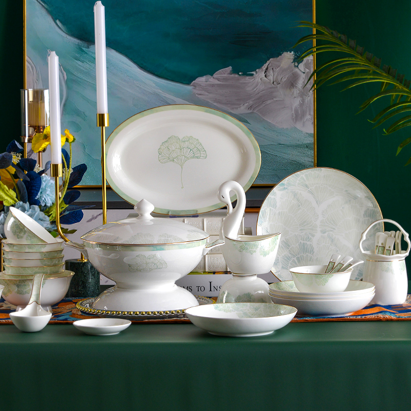 Cuisly-green Jiangnan bone porcelain tableware (gift box dress)