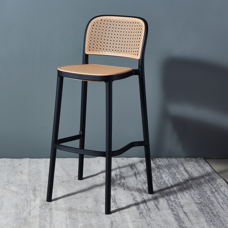 Nordic Bar Chair Minimalist Modern Home Plastic Imitation Vine High Foot Bar Chair 75cm High Net Red Bar Bench Backrest White