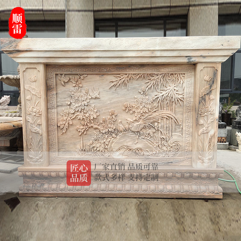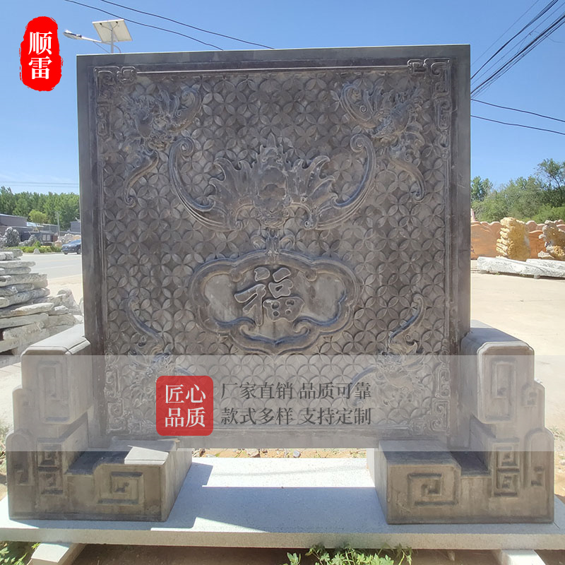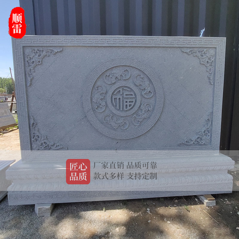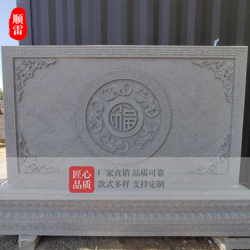 Stone carving relief shadow wall Han Baiyu courtyard sunset glow red blessing word floor carving Chinese bluestone antique porch wall carving