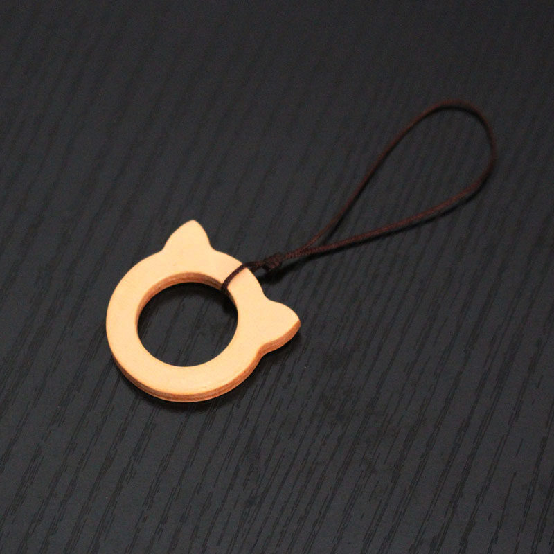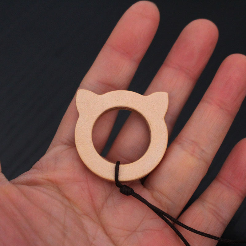 Cat double-sided mobile phone drop-proof ring top layer cowhide vegetable tanned leather handmade keychain hand account pendant gift