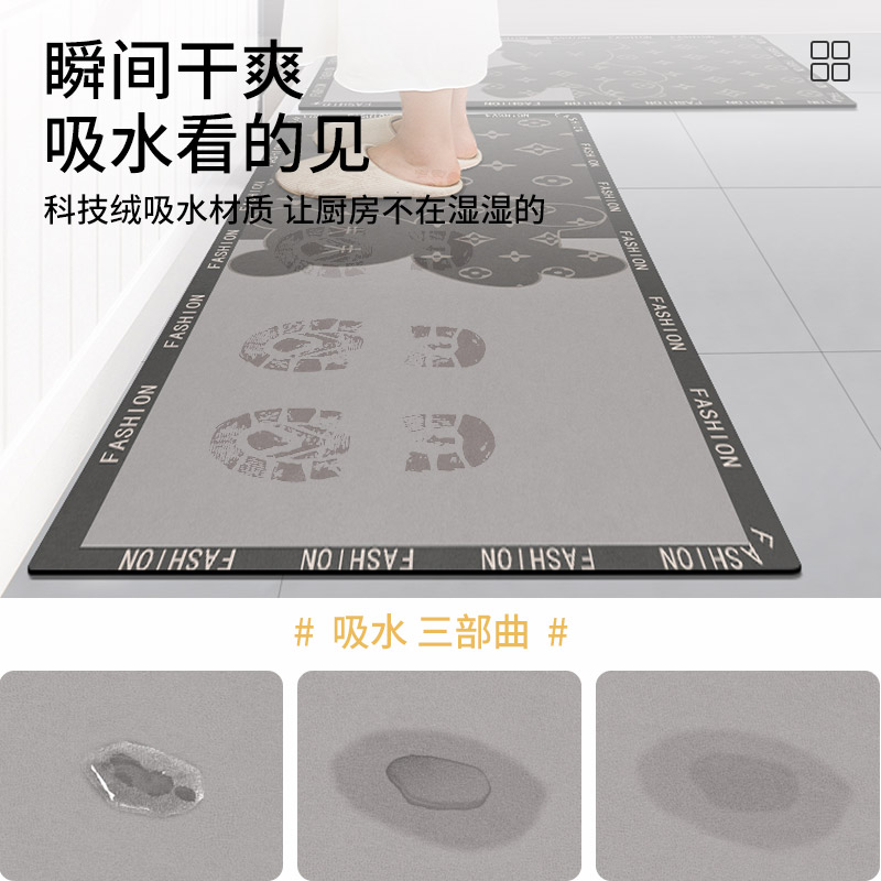 Kitchen Mat anti-slip anti-oil footbed New suction cool cushion Home Free Wash Carpet Resistant Dirty Door Mat Suction oil mat