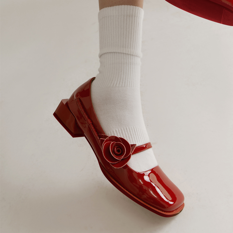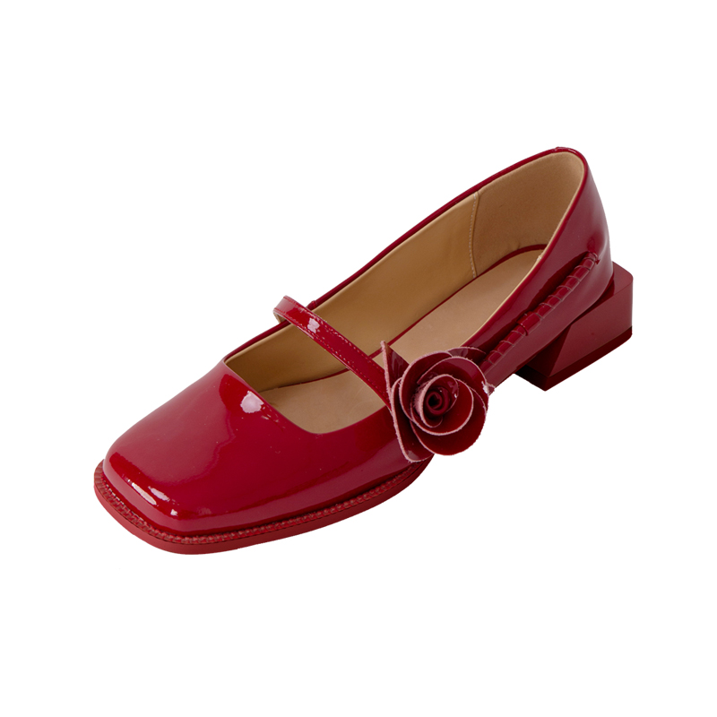 Elegant Elegant Ocean Flowers Genuine Leather Retro Mary Precious Shoes Woman 2022 new painted leather square head flat-bottomed single shoe