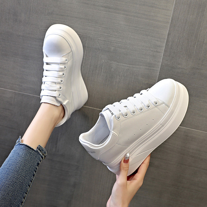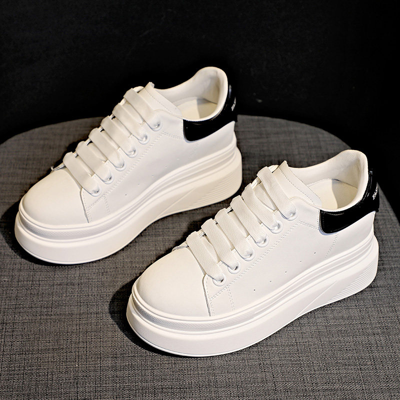 Genuine leather small white shoes women 8cm all-match showing feet small head layer cowhide soft bottom light casual sports inner heightening women's shoes