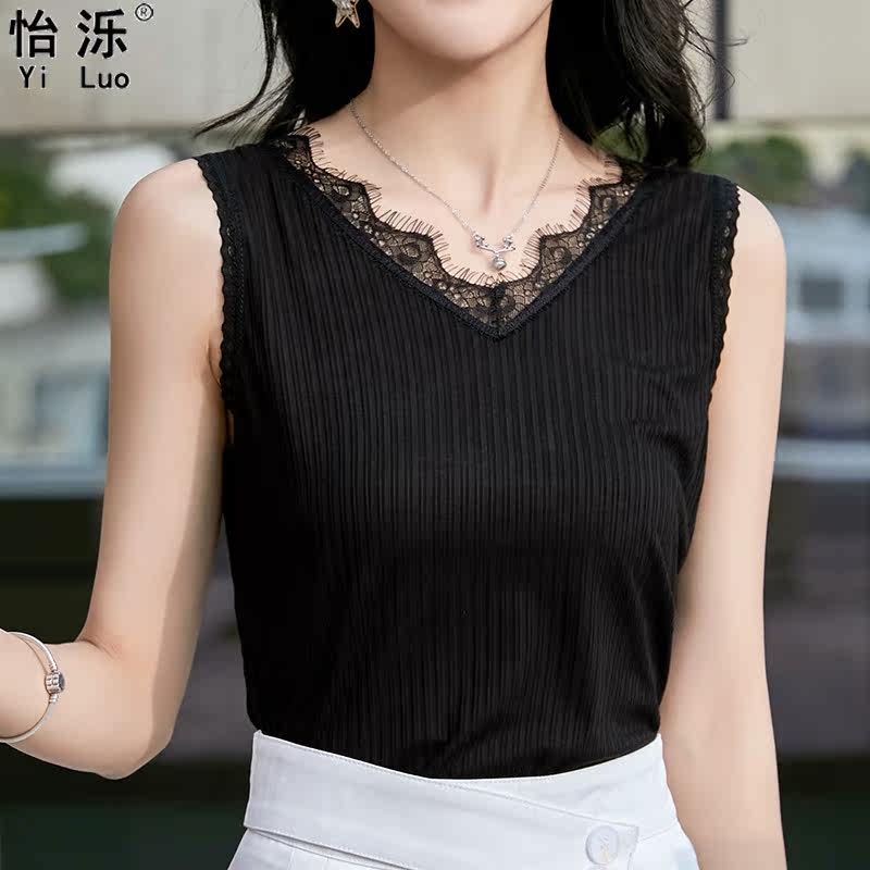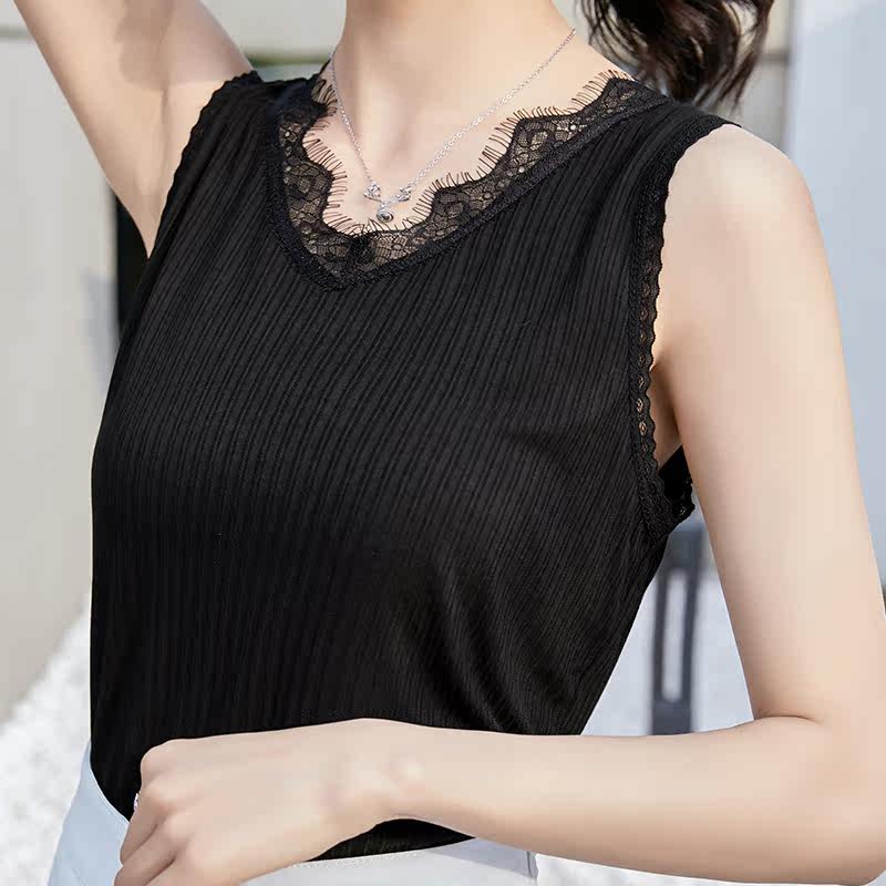 2022 summer new lace lace V-neck suspenders women's vest thin section loose all-match underwear can be worn outside as a base