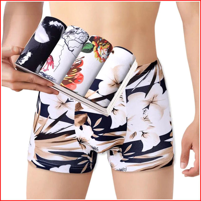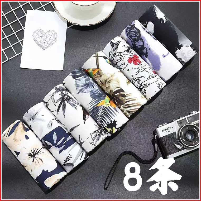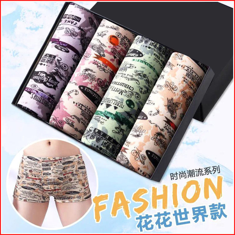 Men's underwear ice silk boxer pants large size thin section trend personality printing fashion youth student boxer pants