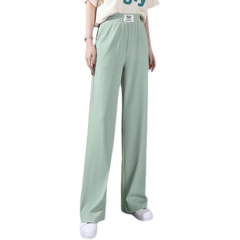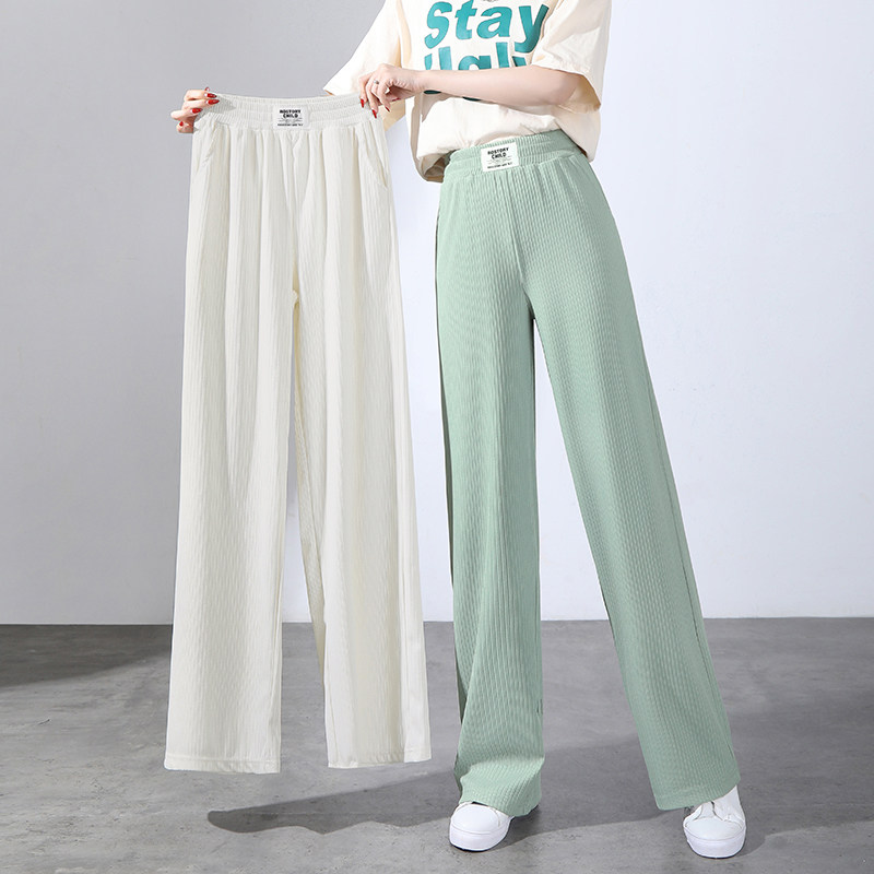 Ice Silk Pants Children Summer Big Code Fat Mm Loose Broadlegged Pants Slim high waist elastic Candy Color Casual Straight Barrel Long Pants-Taobao