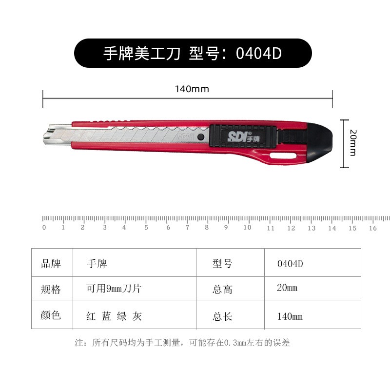 SDI Hand Board Beauty Work Knife Sharpness 0404D Small Number 9mm Cape Water Cut Paper Wallpaper Handmade Tool Holder