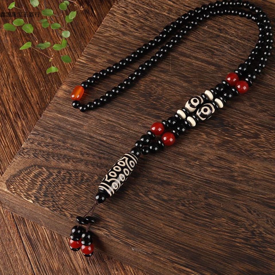 Tibetan Agate Dzi Necklace Black and White Twenty-One Money Dzi Necklace Red and White Agate Dzi Necklace