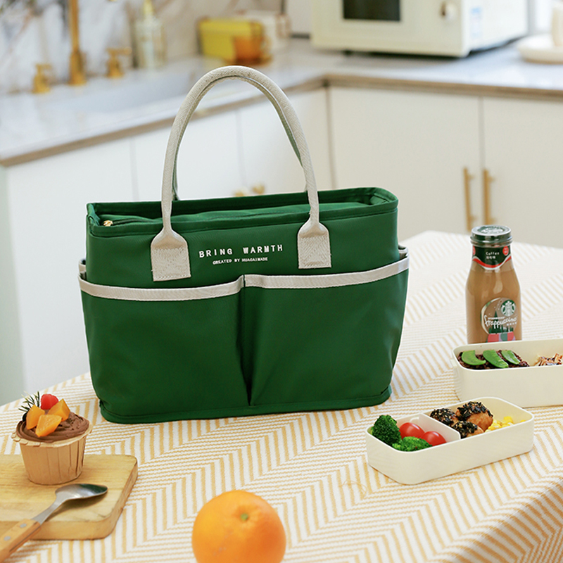 Medium Flat Mouth-Light Luxury Green-Lunch Box Insulation Bag Medium Flat Mouth-Navy Green-Lunch Box Insulation Bag