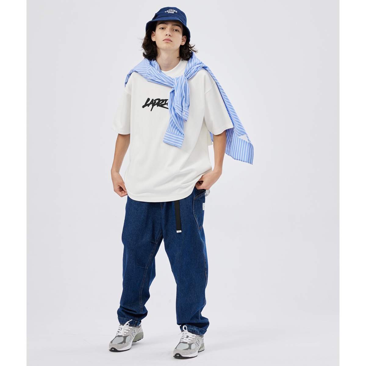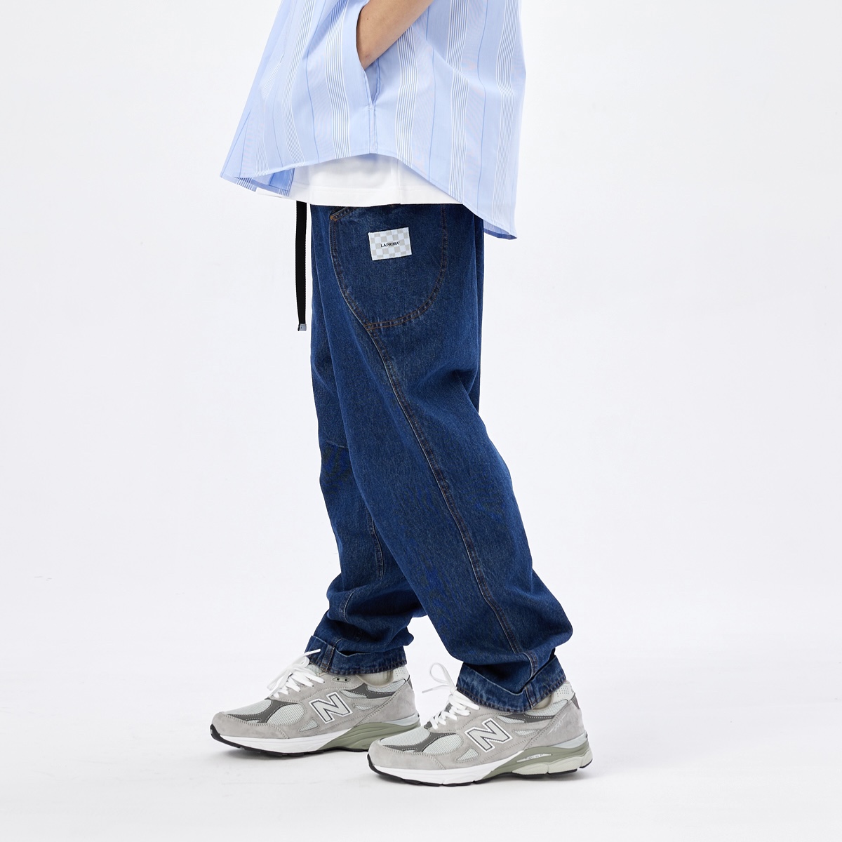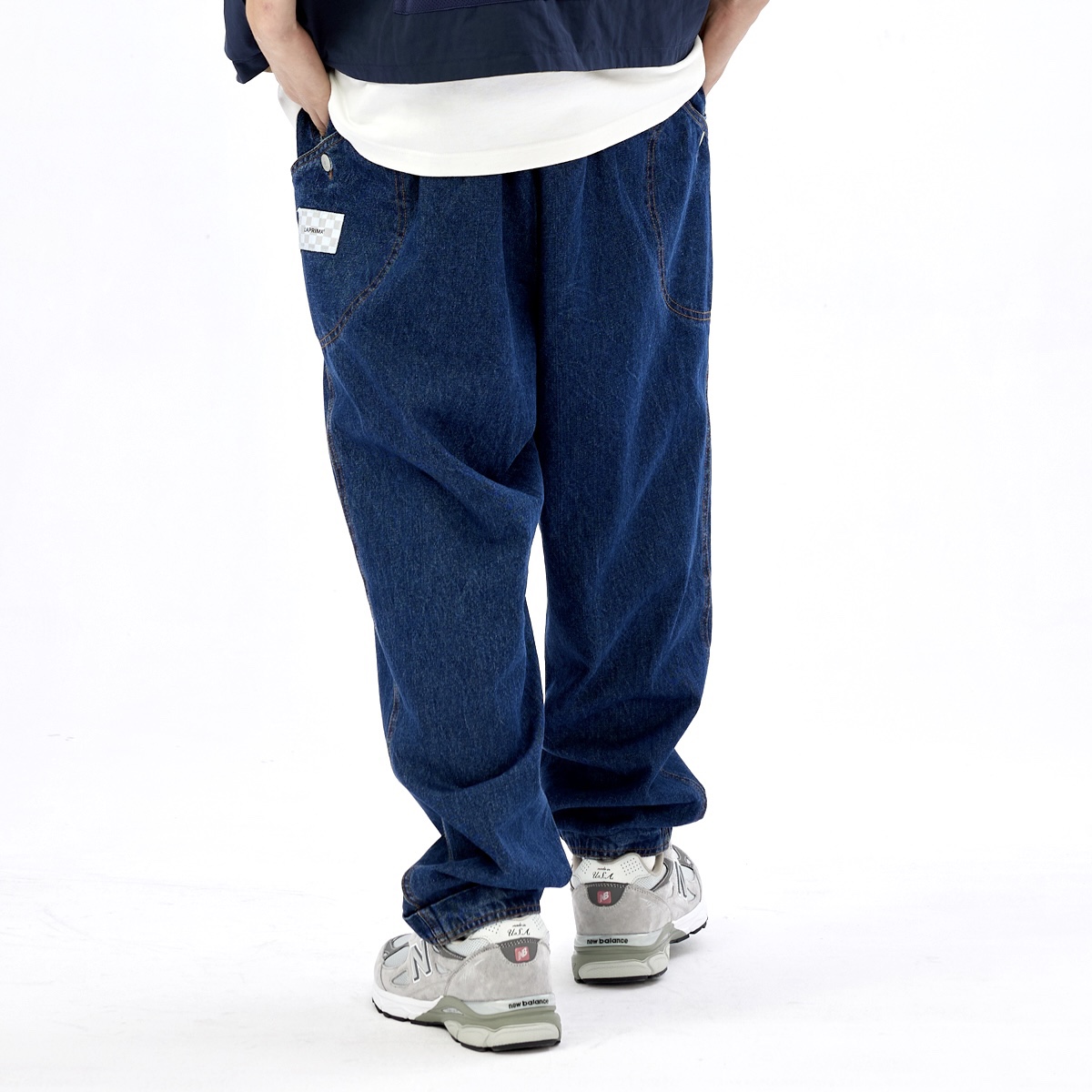 LAPRIMA 22SS CAMPING JEANS WASHED INDIGO Elastic Waist Denim Conical Quite Broadtanin Pants