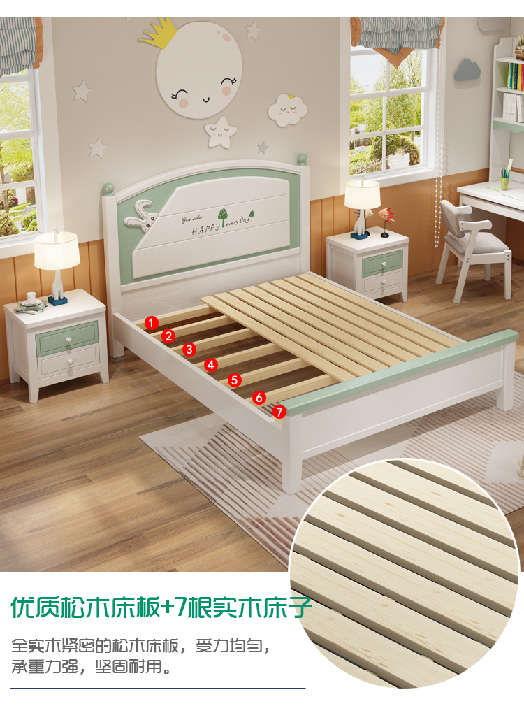 Solid wood children's bed simple 1 5 meters boy girl princess teenage furniture white combination pine single bed