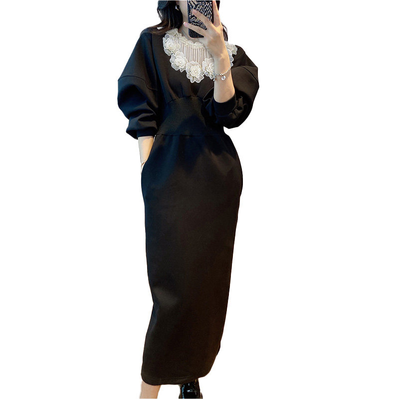 Black Ocean Gas Waistcoat Dress Woman's Small crowdDesign Feminists Fall Long Dress 2023 New European Station European Goods-Taobao
