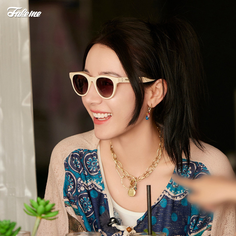 Fakeme hot bar with the same light extravagant plate cat eye sunglasses sunglasses female neutral section Korean Lowry2022 -Taobao