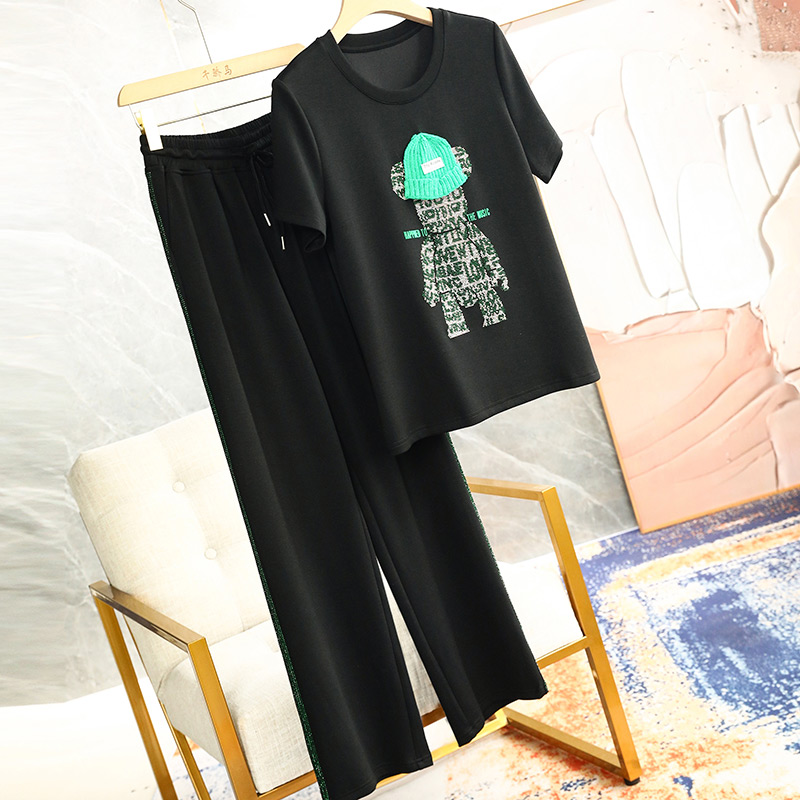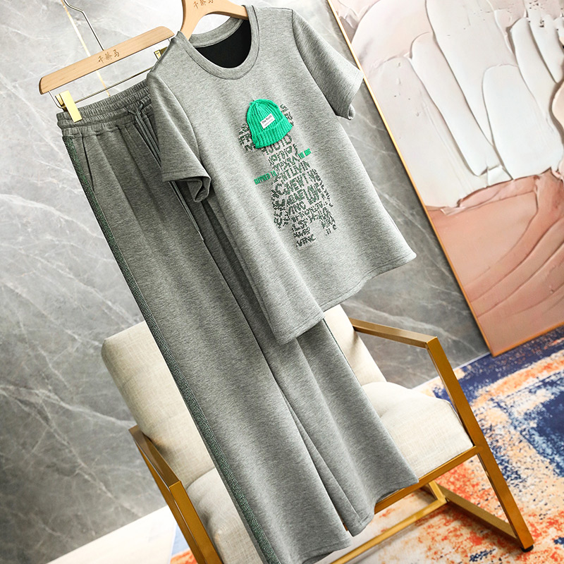 2022 Spring Summer Trendy Foreign Pie Short Sleeve Green Casual Fashion Loose Broadlegged Pants Sportswear Suit Woman Spring Autumn