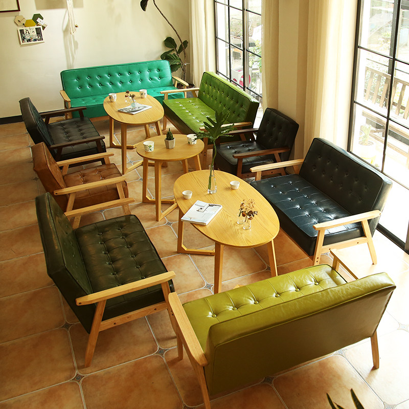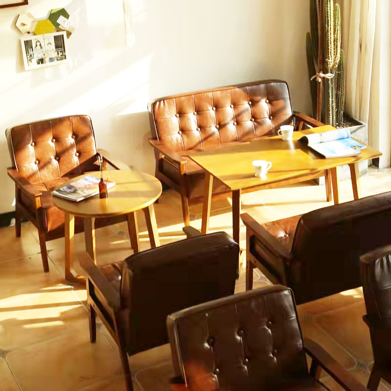 Retro Clear Bar Sweet Boutique Coffee Cafe Milk Tea Shop Table And Chairs Combined Casual Dining Room Solid Wood Leather Sofa Reception Talks
