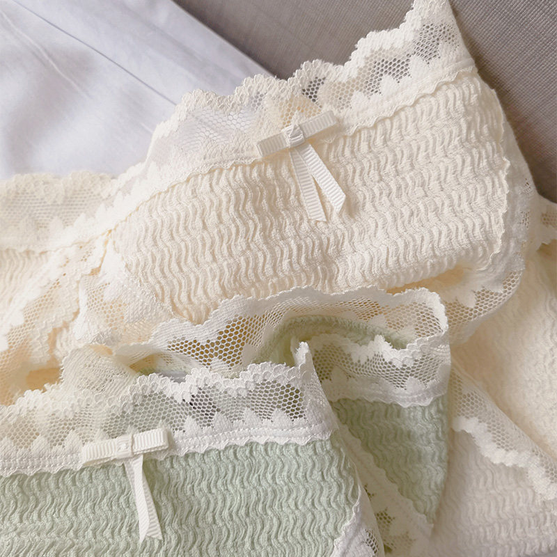 Early spring buds and apricot flowers new willow corrugated quick-drying fabric super soft lace edge high slit girls heart underwear