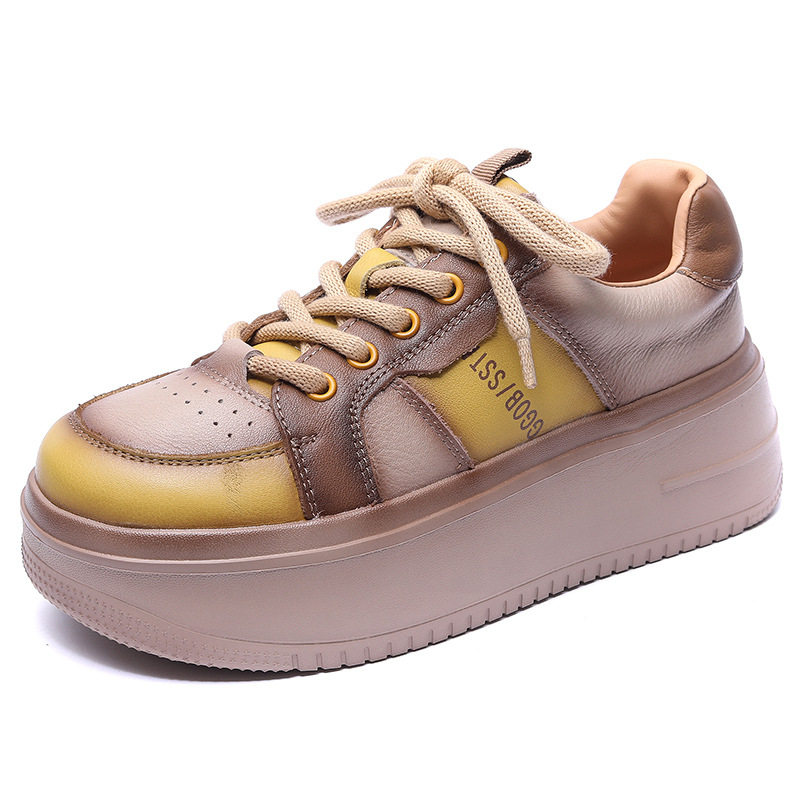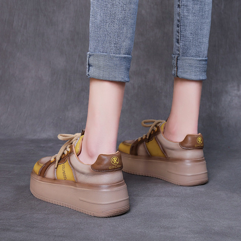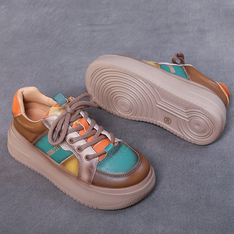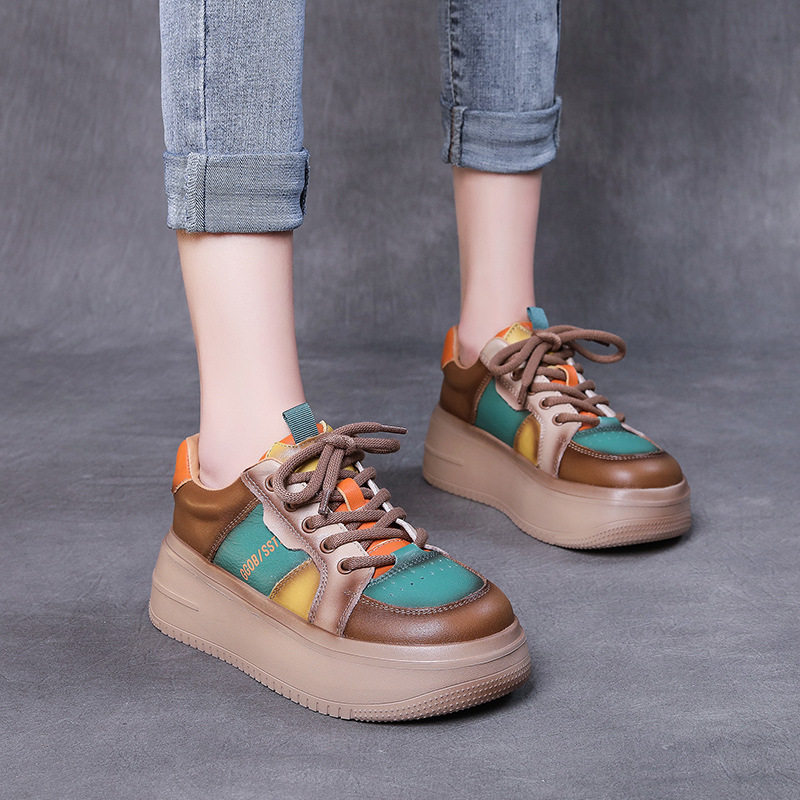 Leather daddy shoes women's thick bottom lightweight 2022 new retro color matching candy color women's shoes muffin casual sports shoes