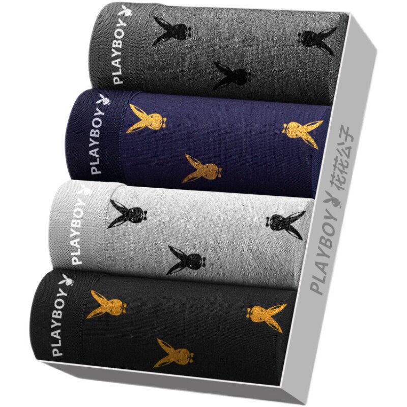 Playboy underwear men's youth cotton mid-waist boxer pants cotton antibacterial inner file summer breathable boxer pants fork