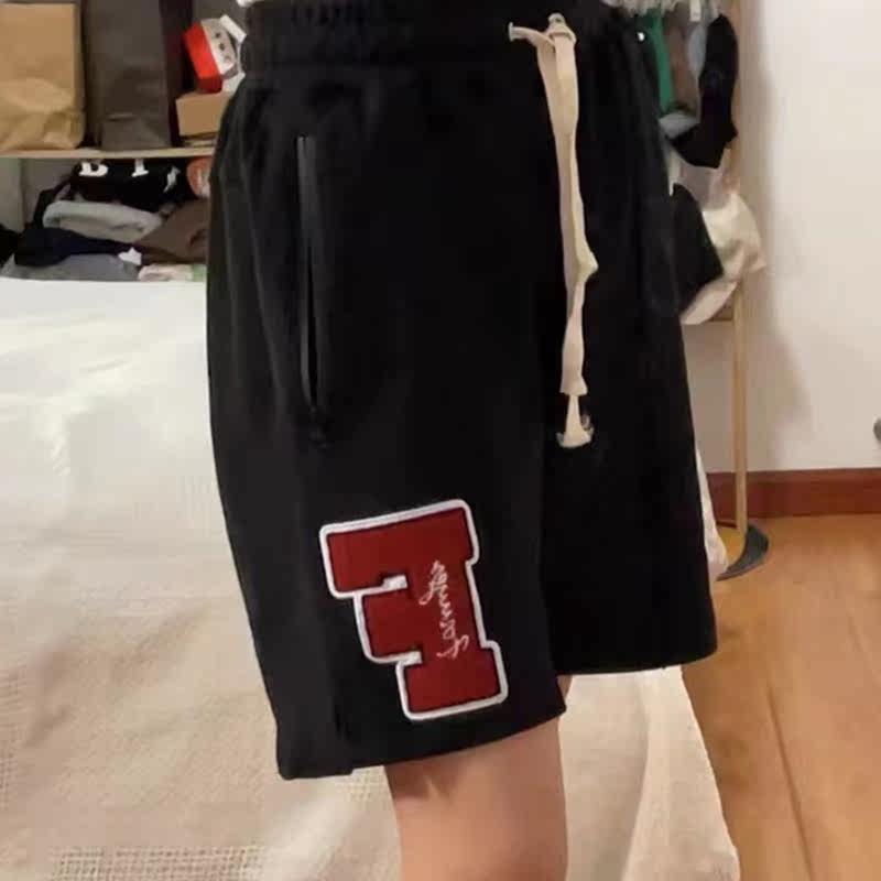 FORUYES(4UYES) American retro campus slogan logo country trend couple casual loose hair shorts