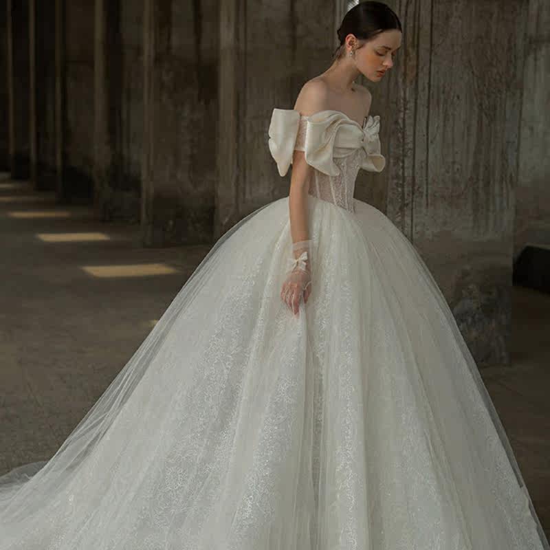 One-shoulder wedding dress 2022 new bridal main yarn high-quality texture small big tail retro big size fat mm