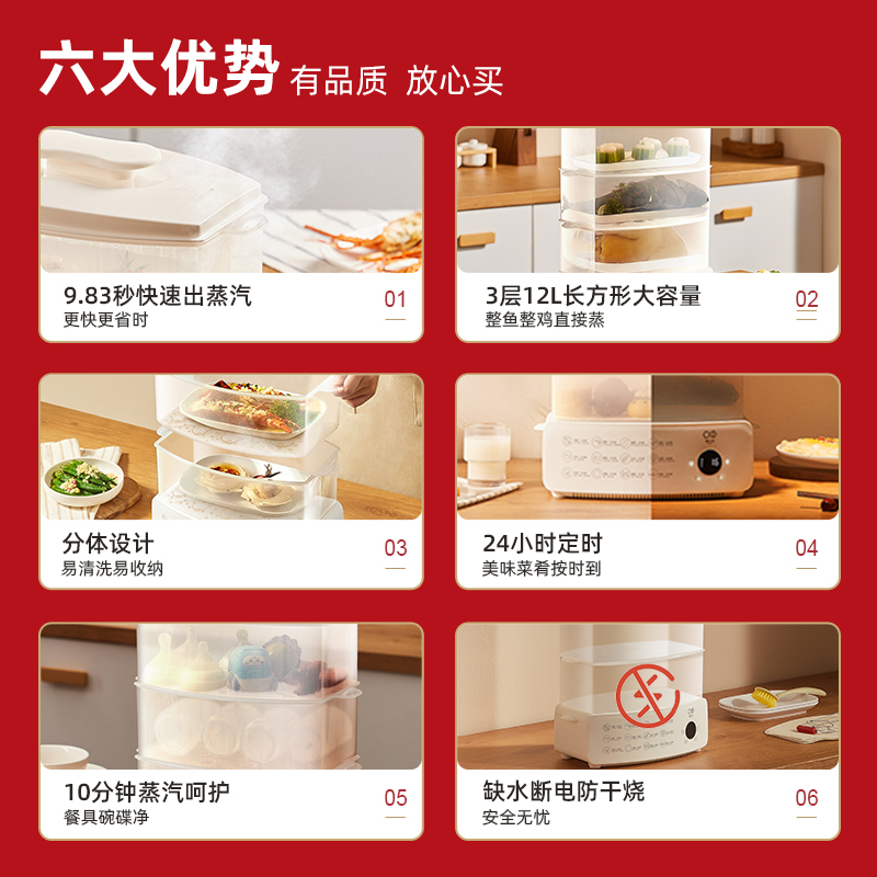 Upgrade the Twilight Snow White (Single-layer Smart subsection 4L) Upgrade of the Twilight Snow White (Double-layer Smart Section 8L) Upgrade of the Twilight Snow White (Three-layer Smart Section 12L) Single-layer steaming rack (assorted plus layer use)