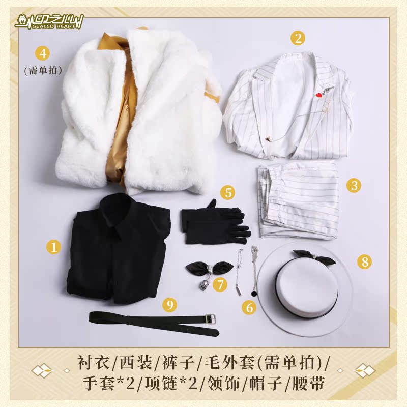 Print Hearts Cos Virtual Men's Mission LUXIEM Black Boss Boss Luca COSPLAY Suit Fur Coat