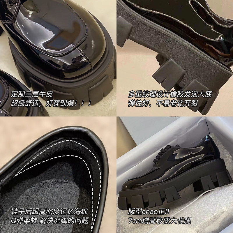 Full cow leather ~ Liu Wen the same small leather shoes women's thick bottom heightening 7cm Inn Wind Lefu shoes Single shoes 2022 small children