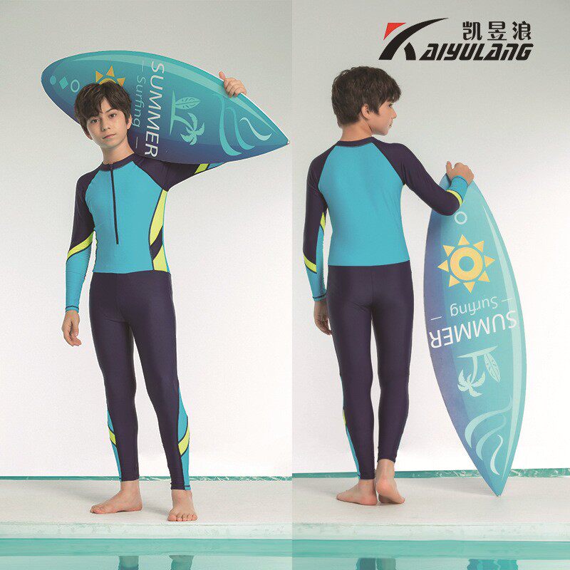 Boy student swimsuit long sleeve long pants sunscreen conservative sports professional speed dry training even body 60-110 catfish