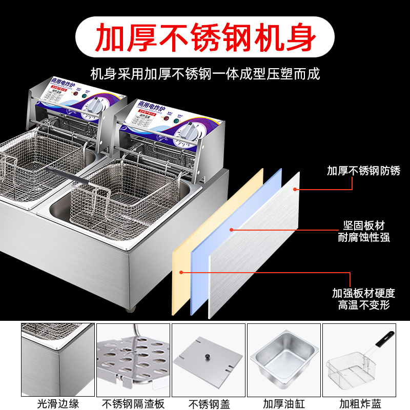 Frying Pan Commercial Electric Fryer Thickened Fried Oil Bar Fried Chicken Ribs Fried Strings Special Machine Double-Cylinder Large Capacity Electric Fryer