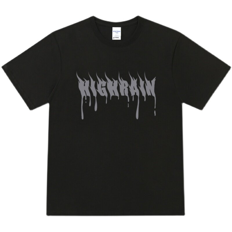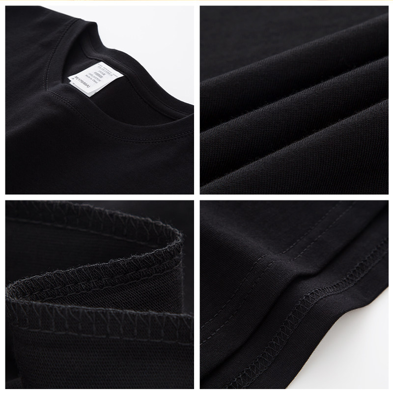 Very moisturizing studio European and American dark black round collar pure cotton short sleeve T-shirt male and female students 100 lap high street loose T-shirt summer
