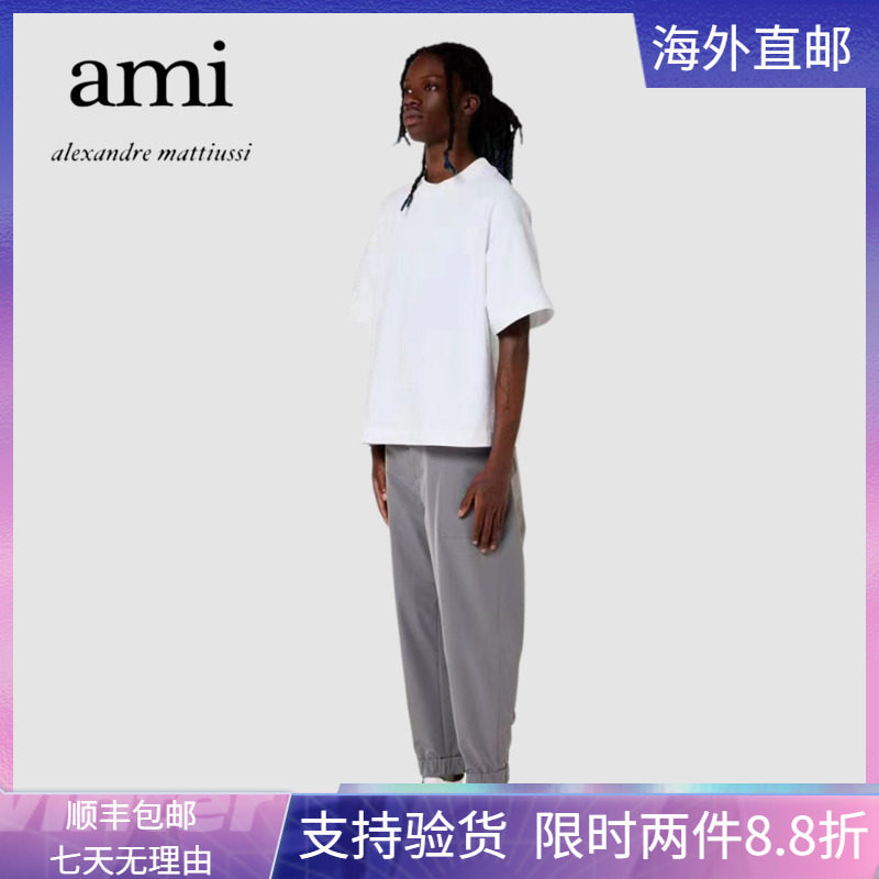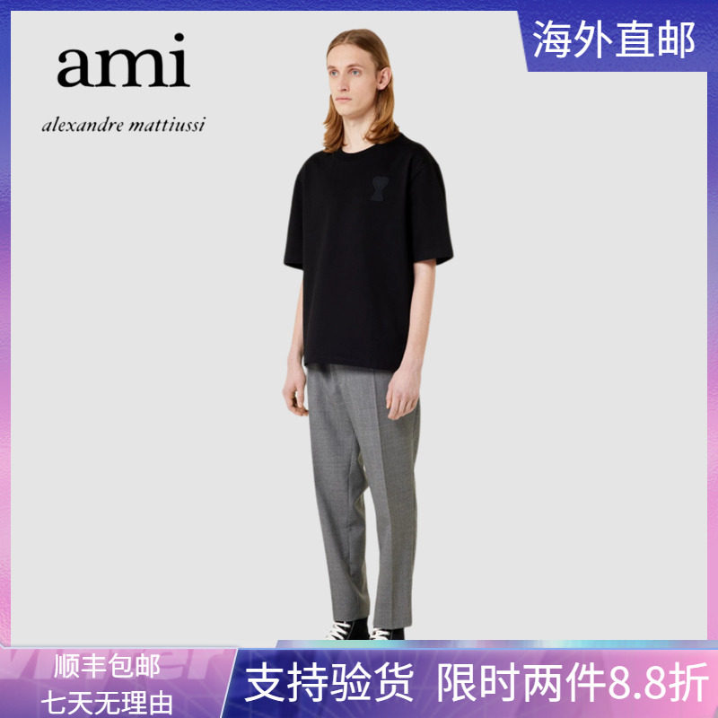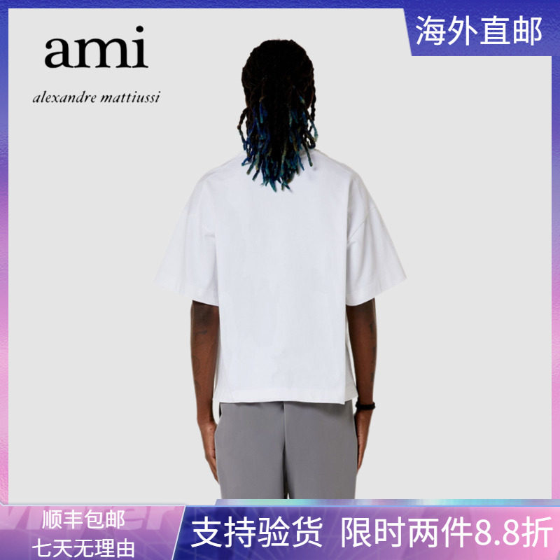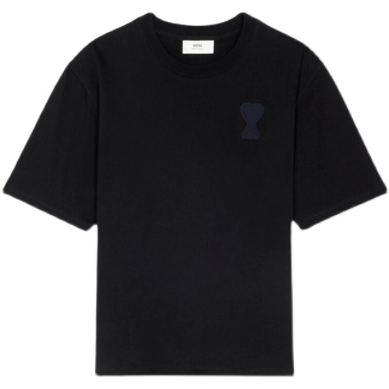 Ami Paris Short Sleeve New Chest Front Patch Flowers Pure Color Round Collar Little Loving Men And Women Couples Loose Casual T-Shirts