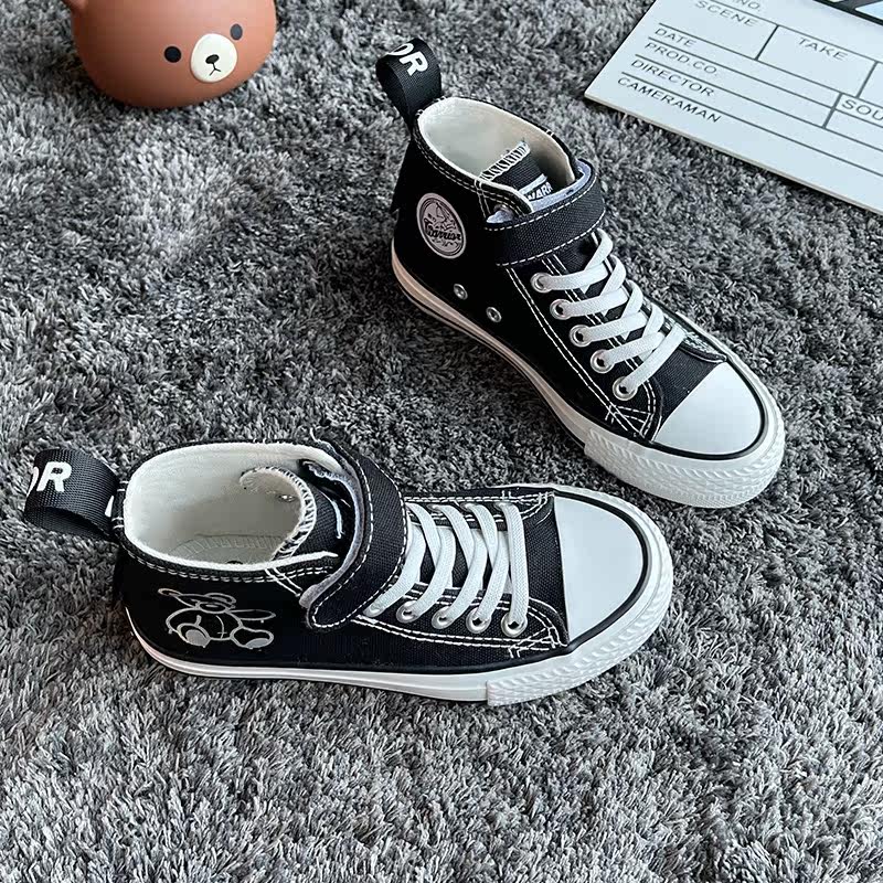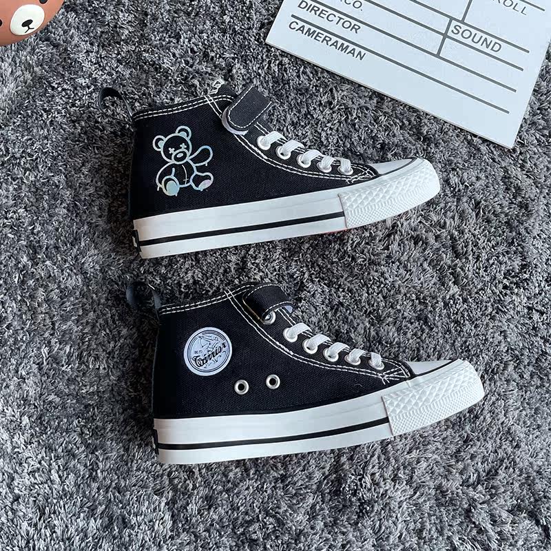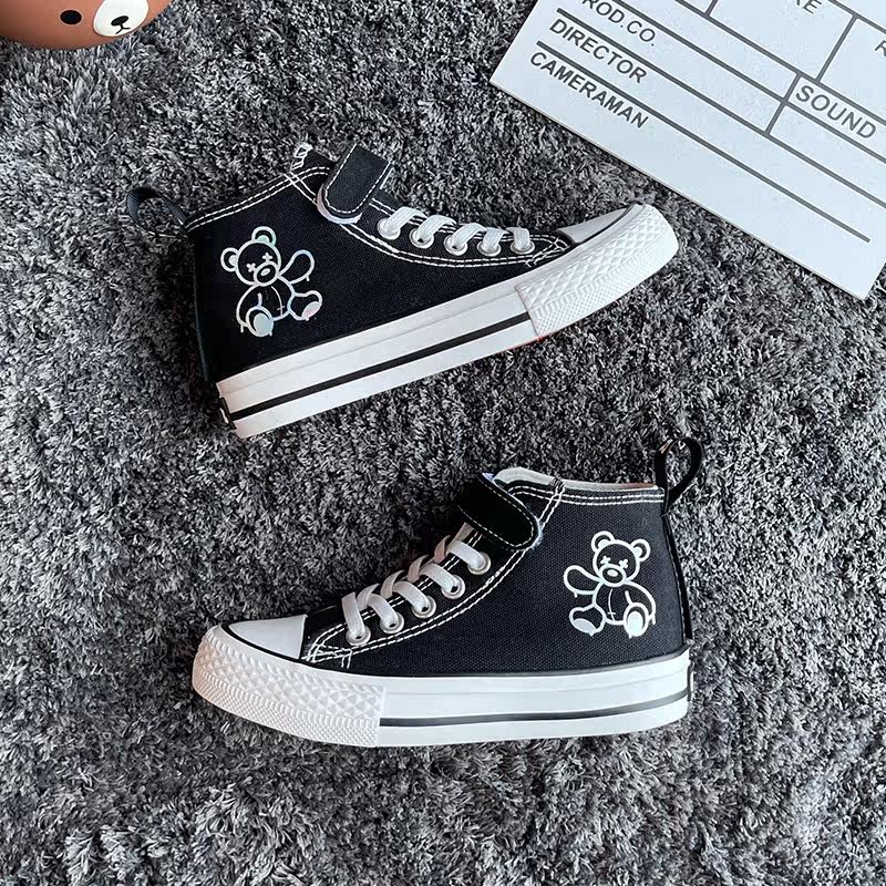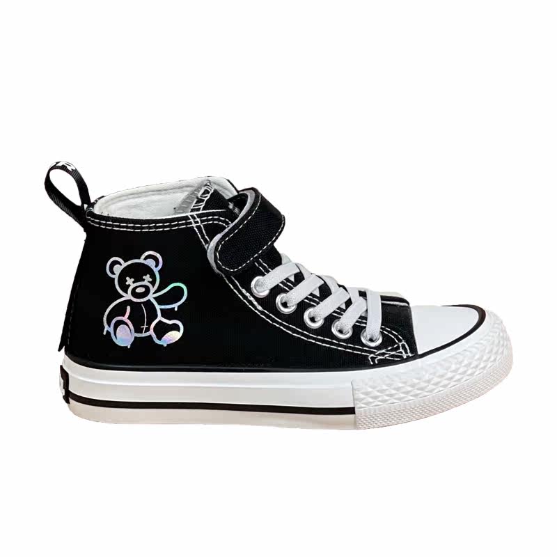 Back Force Children Reflective Little Bear High Cylinder Sails Shoes Graffiti Cartoon Girl Board Shoes 2022 Spring Boy Cloth Shoes