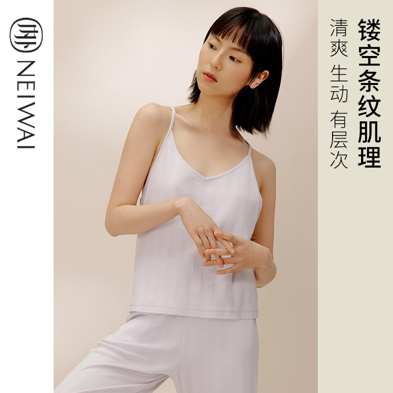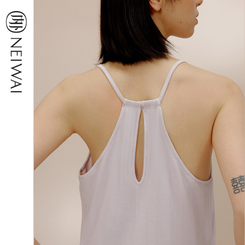 NEIWAI inside and outside girl's long suede cotton pick hole harness sleeping vest Home Jacket Hollowed-out Striped Daily Casual