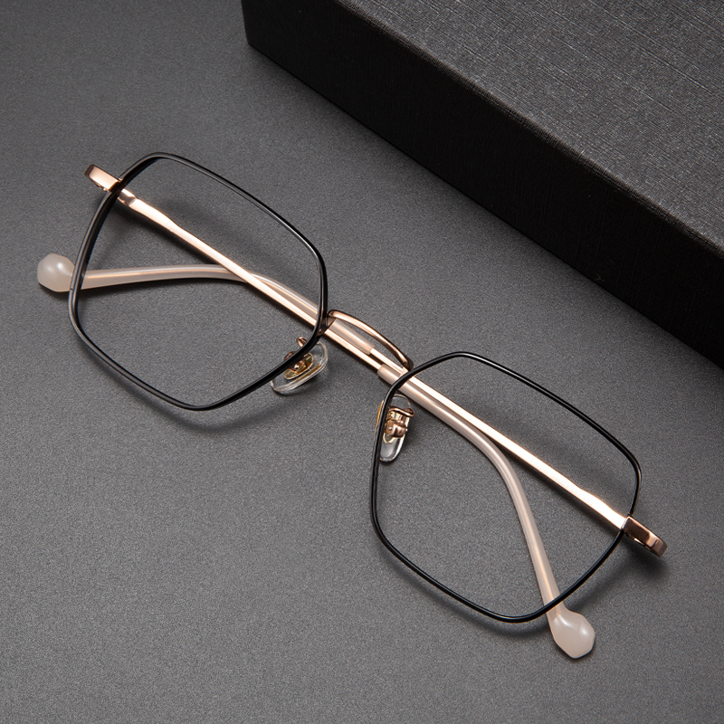 Wooden glasses frame ultra light pure titanium retro-titanium eyeframe Japanese polygon with blue discoloration lens