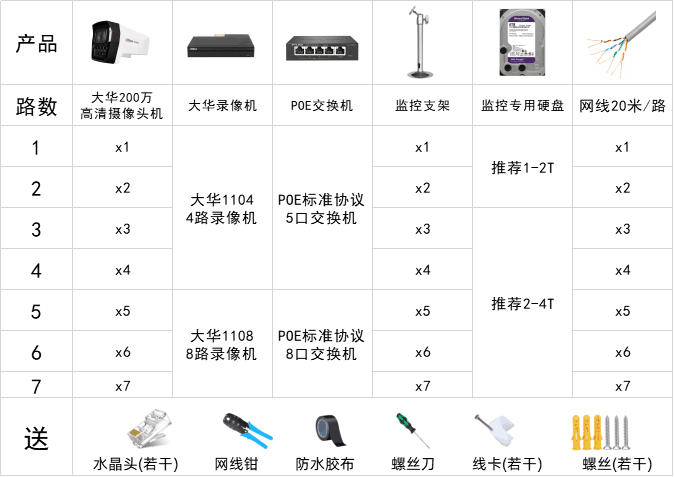 Dahua poe camera 2 million monitoring equipment set intelligent night vision waterproof commercial monitor package