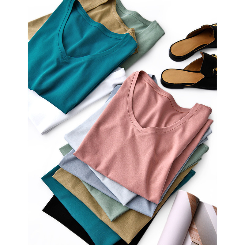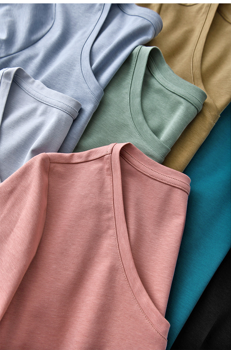 Round Neck - Pure White Round Neck - Cherry Blossom Pink Round Neck - Light Gray Blue Round Neck - Glacier Blue Round Neck - Peacock Blue Round Neck - Kiwi Fruit Color Round Neck - Jade Green Round Neck - Classic Black V-Neck -