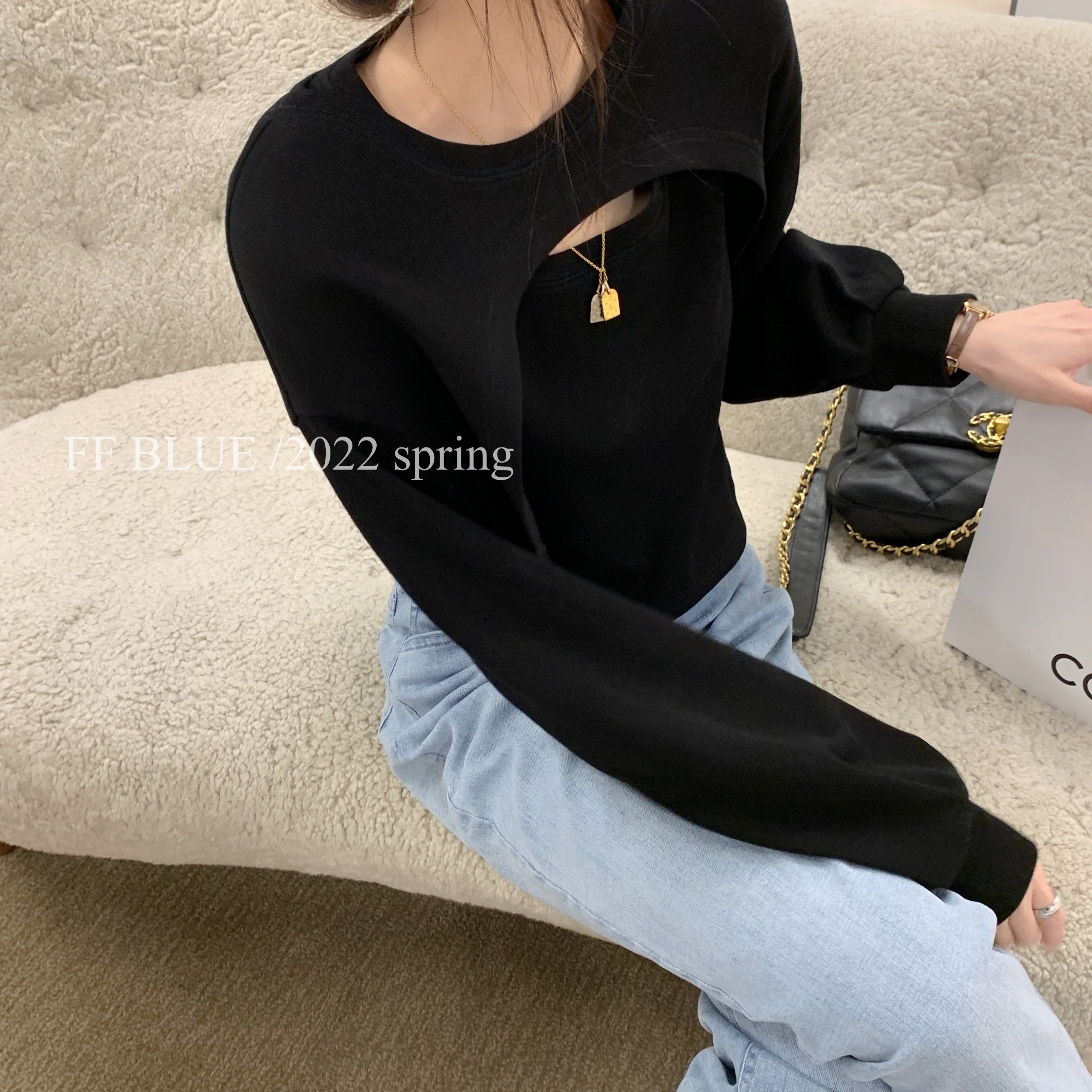 FF BLUE Heart Machine Two sets of camerashoulder T-shirt female design sensation slim fit slim black short tee