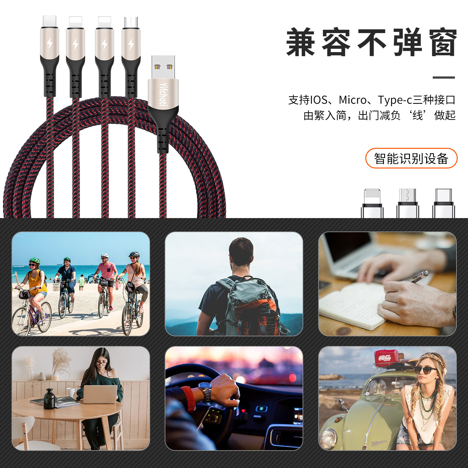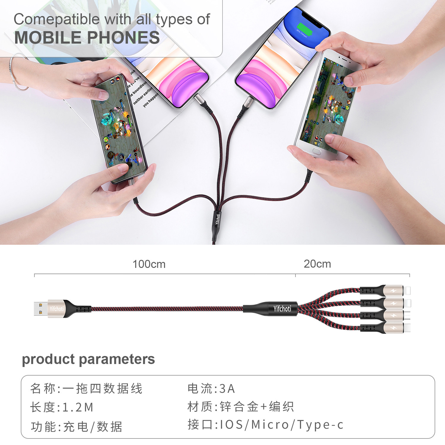 Dagui four-in-one data cable telescopic charging cable one drag four fast charging suitable for Apple Huawei Android Typec mobile phone ipad Apple Android notebook car charging cable multi-functional universal