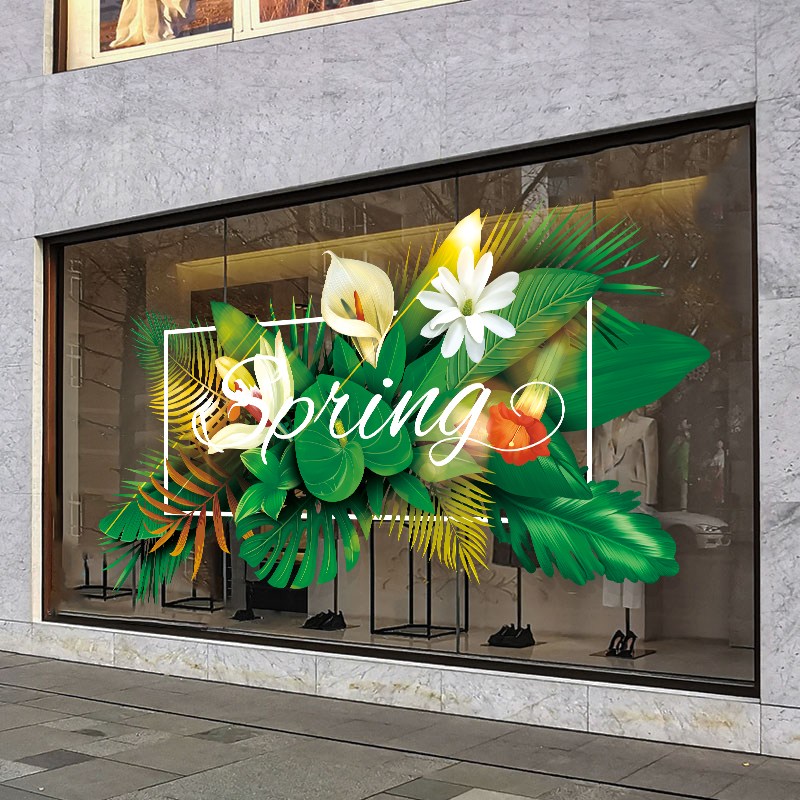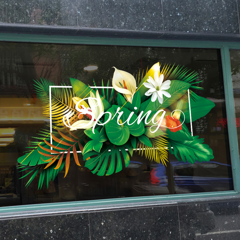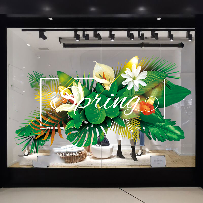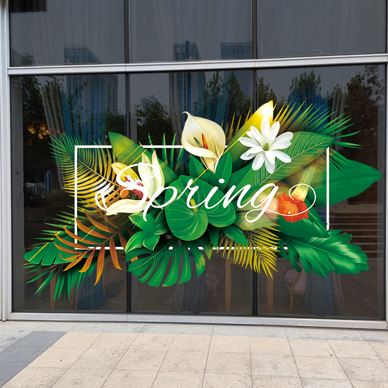 Spring decorative glass door stickers shopping mall theme clothing shop window spring plant scene layout electrostatic stickers