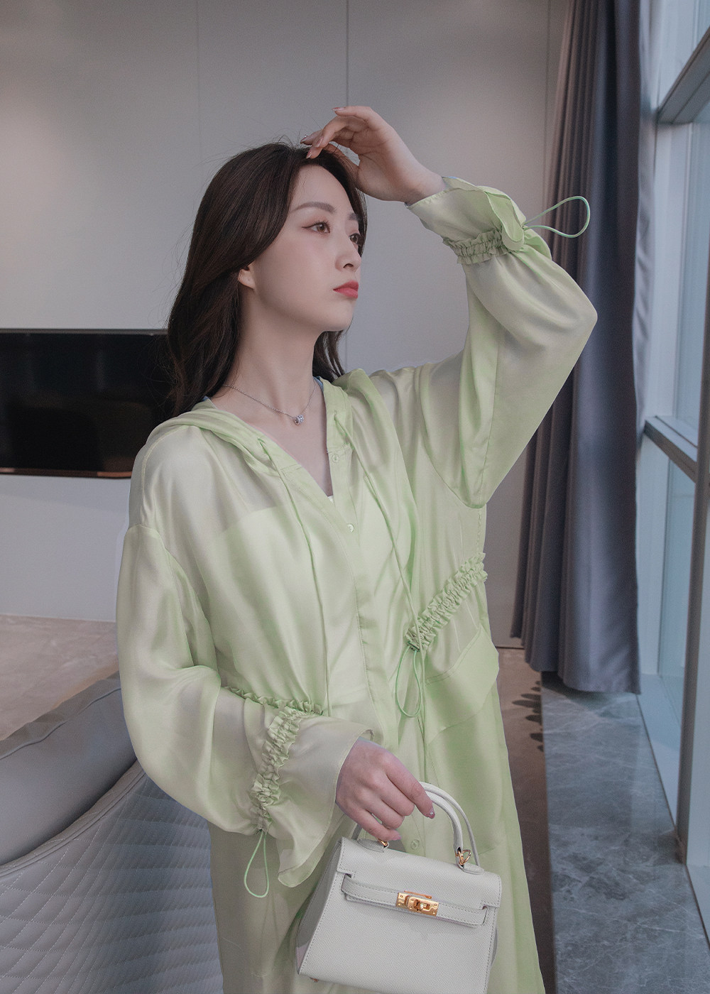 Gale High Dingding LRKS (New Technology Silk Windwear) Full net first hair mulberry silk long version jacket M163