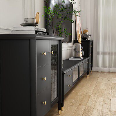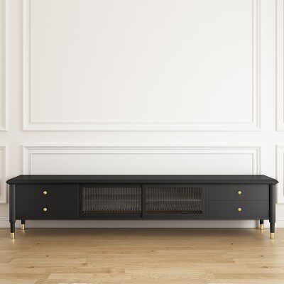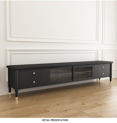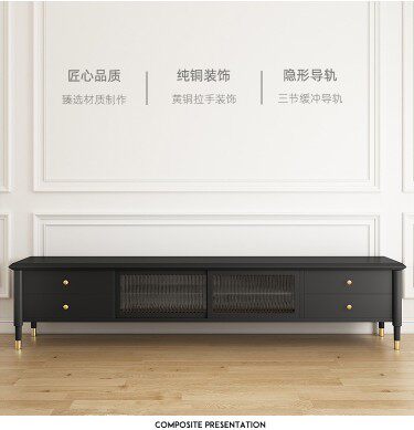 Fa-style retro solid wood Changhong glass TV cabinet light extravagant TV tea table combined black TV cabinet