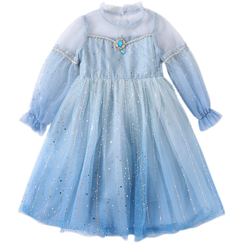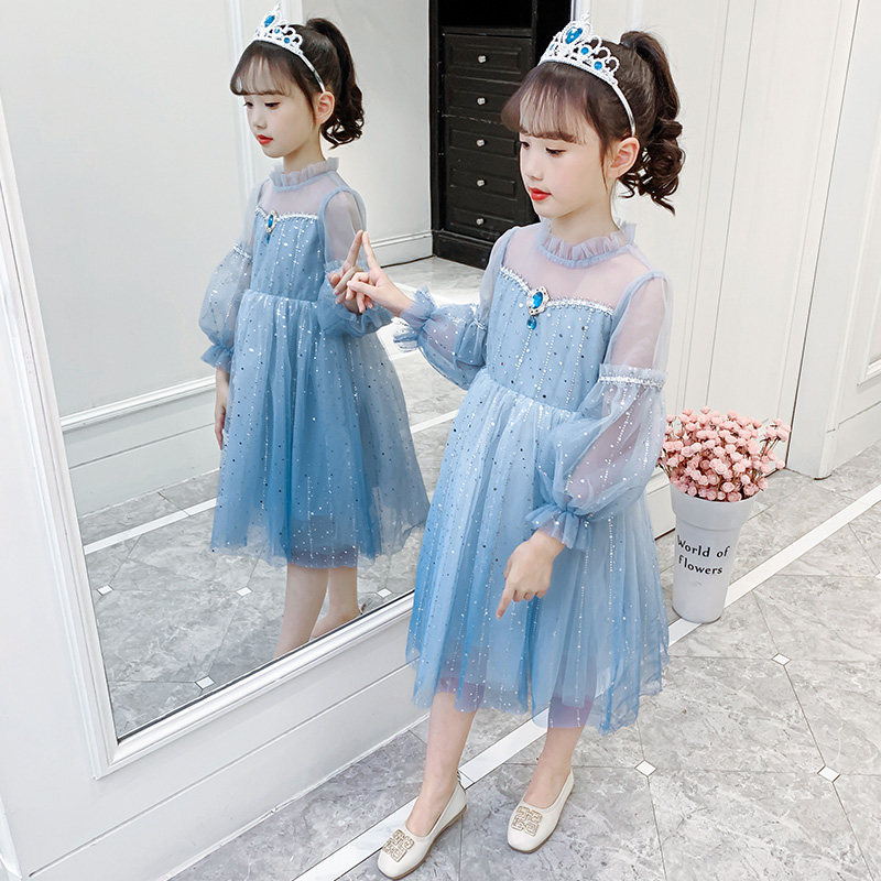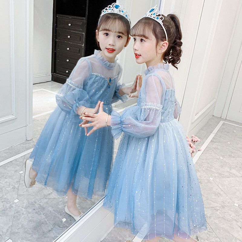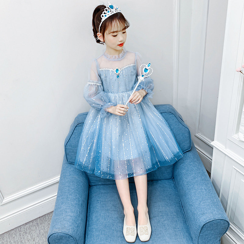 Princess Esha Princess Dresses Girl Fall 2022 New Ocean Dress Aisha Girl Spring Autumn Blue Dress Net Veil Dress Dress