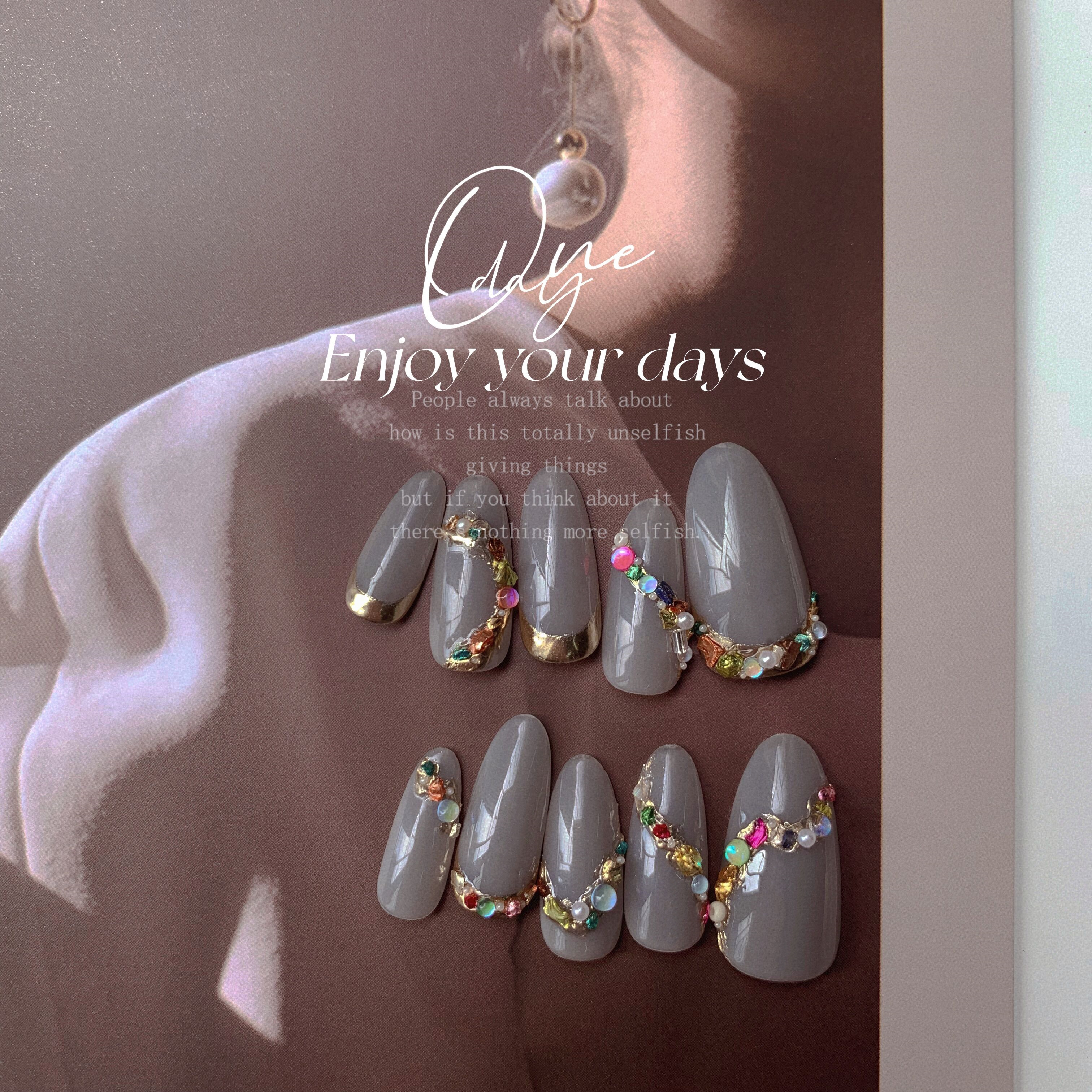 Japanese-style manicure retro gemstone color gravel baroque pearl small color diamond irregular super flash nail jewelry
