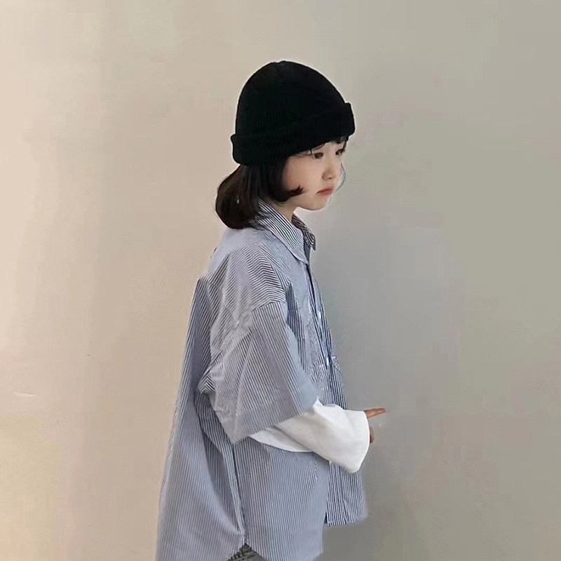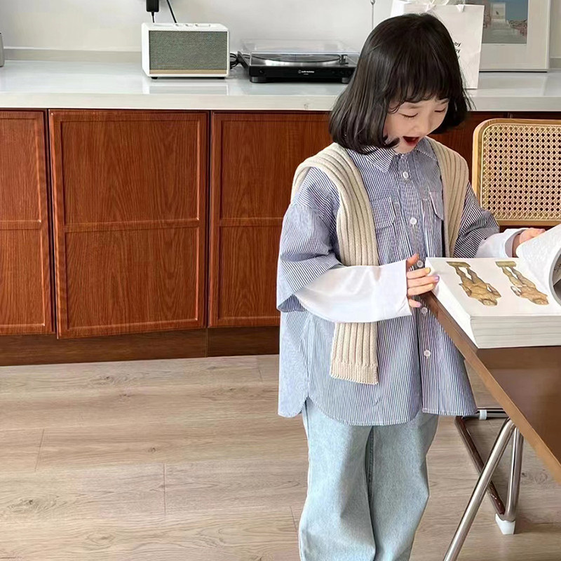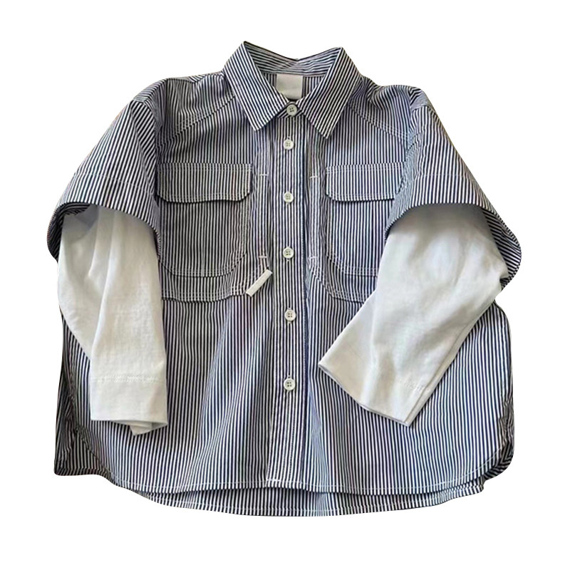 Pola South Korean boy clothing boy fake two shirts 2022 spring children's vertical striped shirt girl foreign blouses