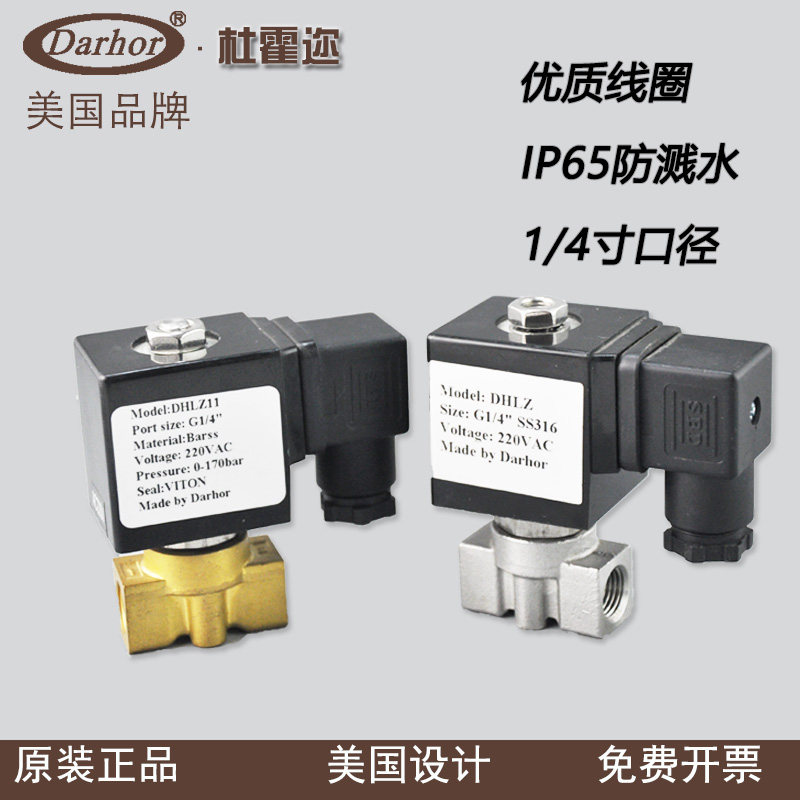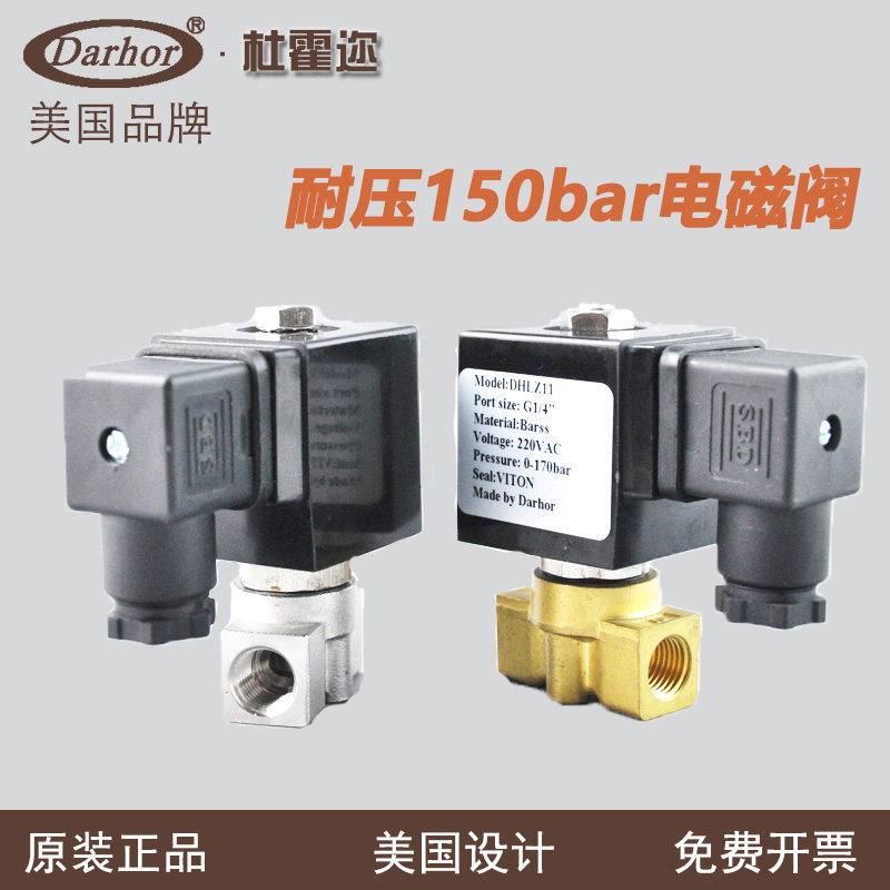 Darhor stainless steel brass high pressure solenoid valve 15Mpa17Mpa miniature 100 kg 24VDC